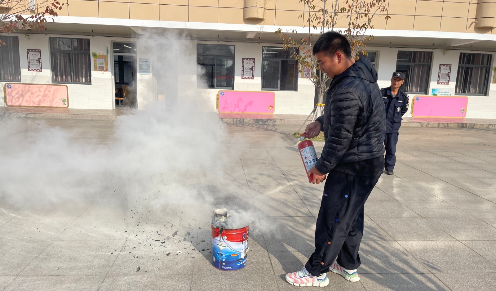 随后,学校安全主任给全体师生详细讲解了灭火器的使用方法,并现场进行了演示,同时邀请了部分教师上台体验使用灭火器灭火的过程。