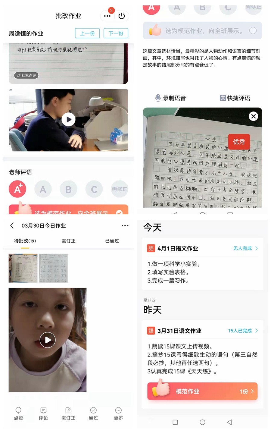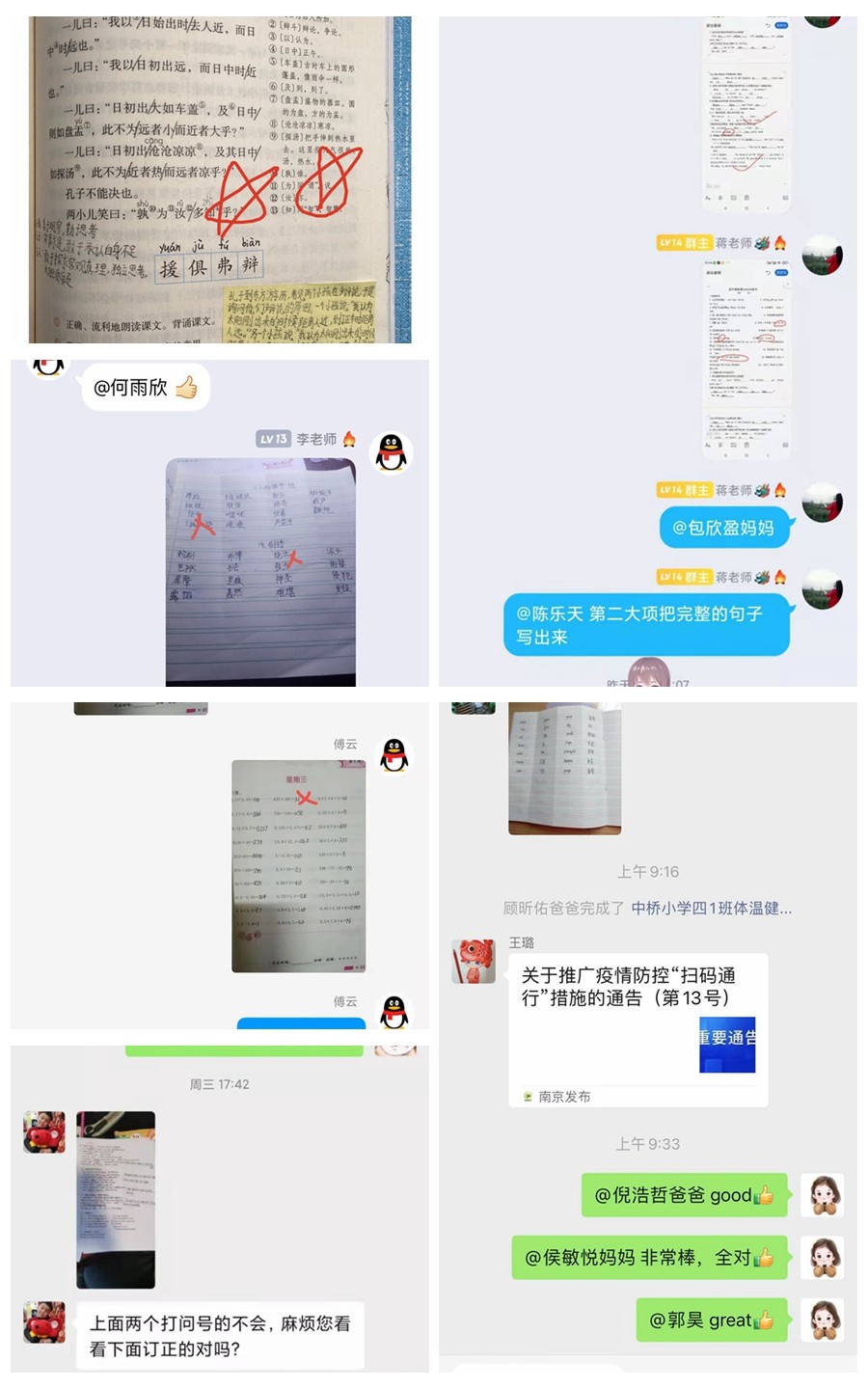 从作业反馈来看,老师们从微信群、QQ群让孩子直接发作业图片到群里进行批改和讲解外,也开始尝试用QQ作业、小黑板、江苏省语言学习系统等助学平台,帮助孩子完成作业提交和反馈错误。