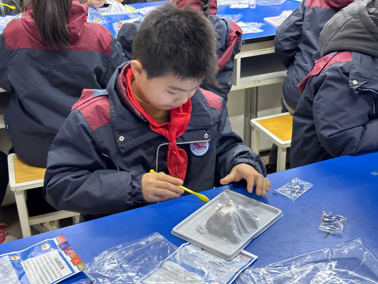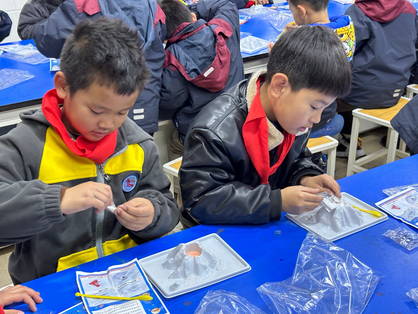 活动中,文明实践站志愿者周老师先带着学生们了解了“什么是火山”、“火山为什么会爆发”“火山爆发的奇观”等知识。