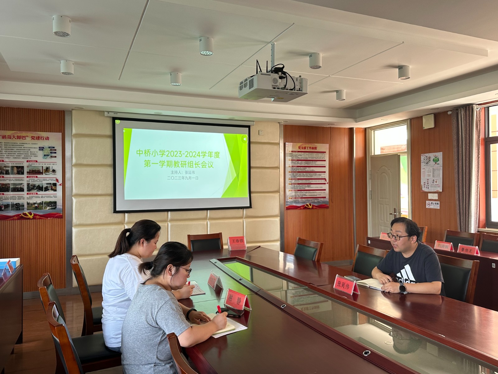 在2023年9月,八卦洲中桥小学教导处召开了新学期第一次教研组长会议,教导处张延伟主任(兼数学组长)、语文组长包雨莎老师和英语组长谢静老师参加了会议。