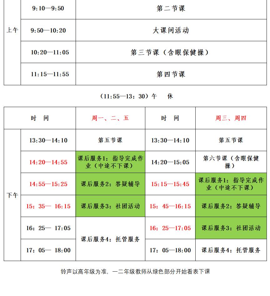 八卦洲中桥小学2024-2025学年度第一学期作息时间表