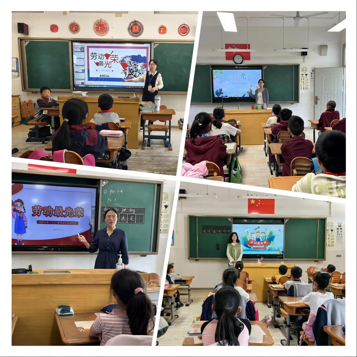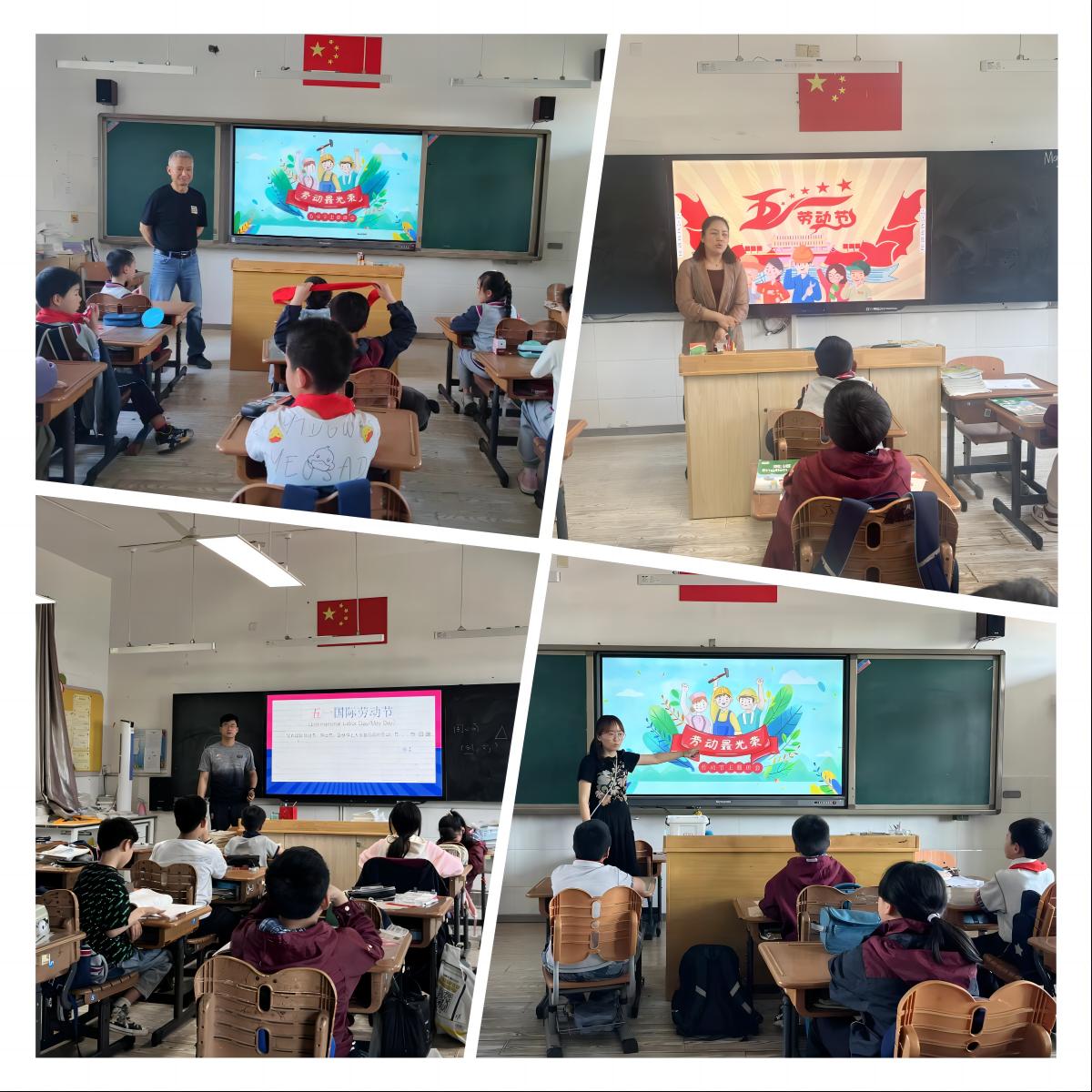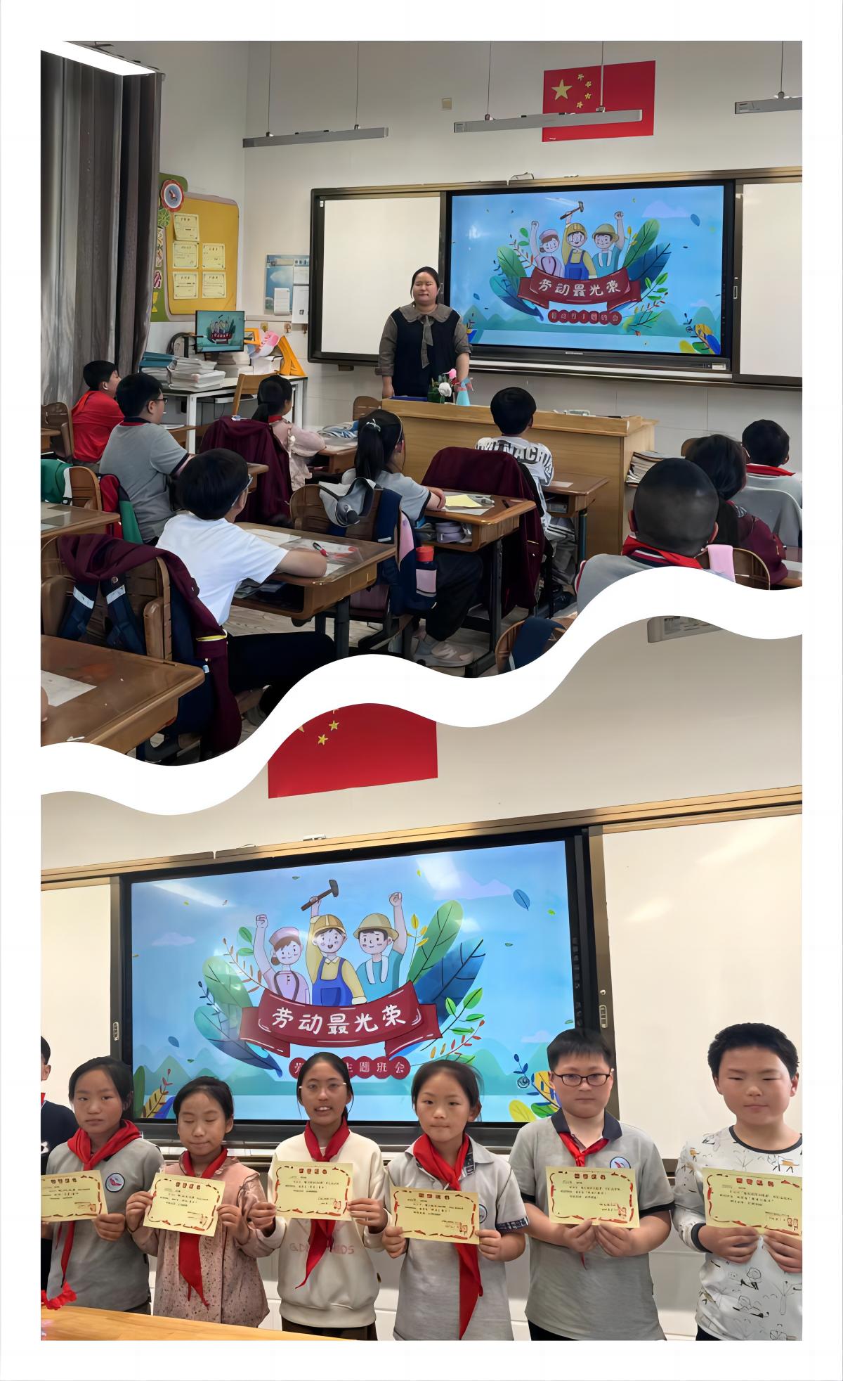 我校各班级积极开展以“我劳动 我光荣”为主题的主题班会,在班会课上,老师们组织学生学习习近平总书记关于劳动的重要论述、新时代劳动教育、新时代劳模精神等内容,让学生全面了解劳动,感知劳动。通过讲述劳动模范故事,号召孩子们向劳动模范学习,从小做一个爱劳动的好孩子。