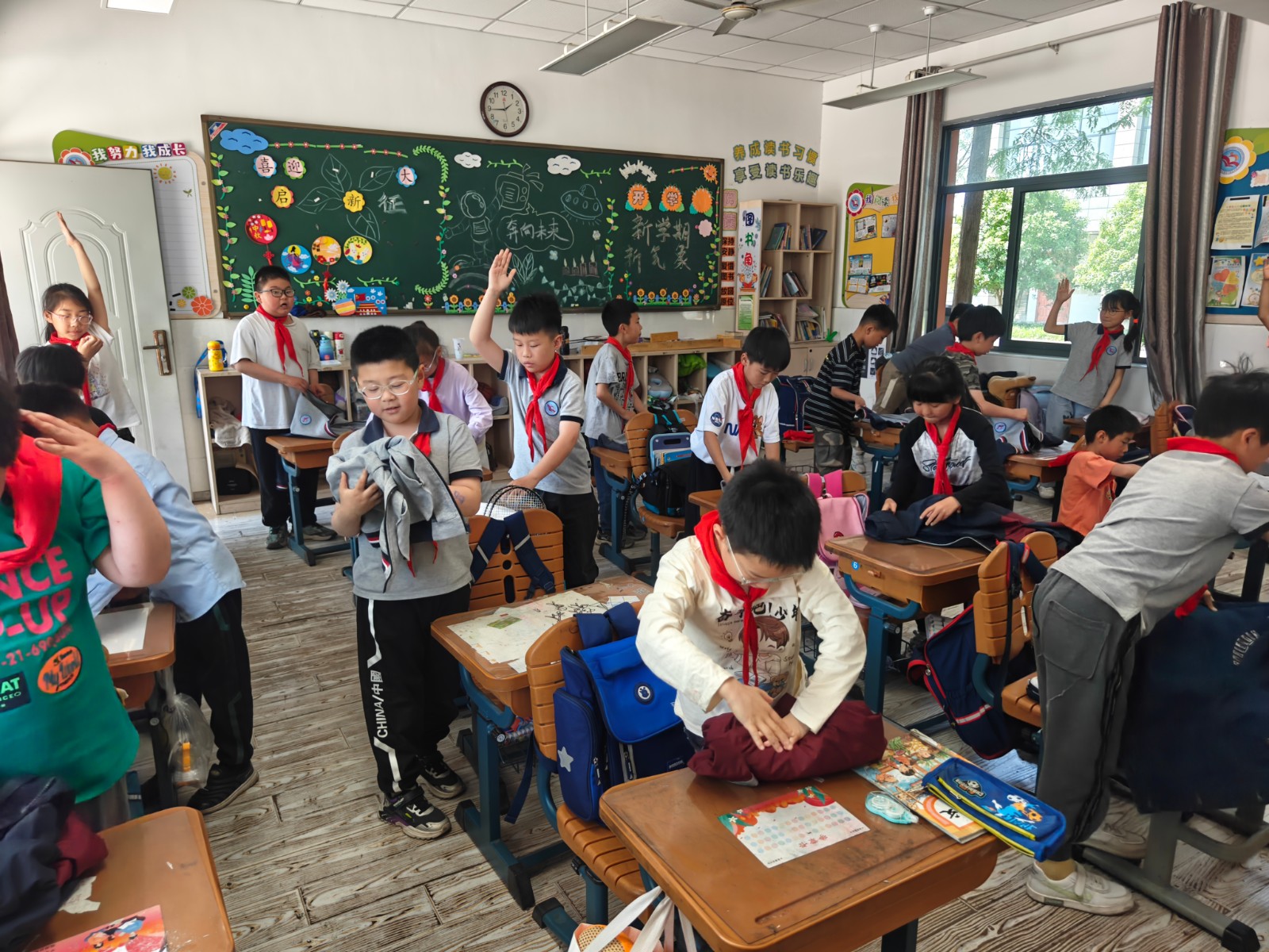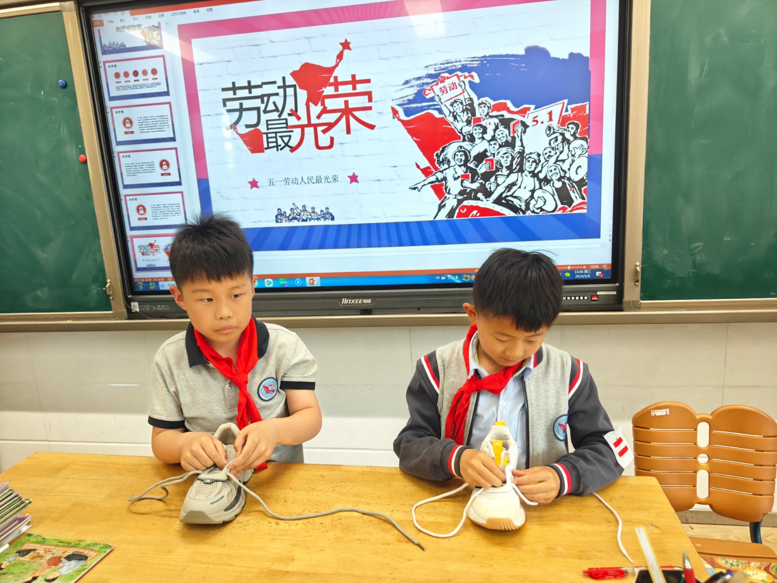 主题班会上,各中队辅导员按照劳动假期的技能学习内容要求,积极组织少先队员们在班级内进行劳动技能小比赛,小选手们个个跃跃欲试,积极参与。