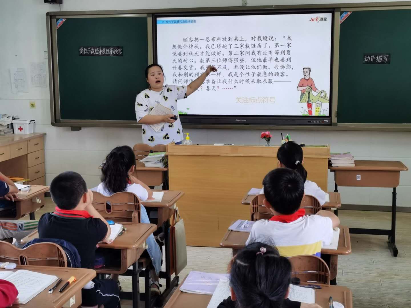 首先,上午第二节课,包雨莎老师在三(2)班开设了一节课题为《慢性子裁缝和急性子顾客》的公开课,包老师的课堂生动活泼,语言凝练,铿锵有力。抓住文中两个人物的性格特点,紧扣“急”、“慢”二字,聚焦文章中的语言、动作描写,指导学生分角色朗读,在此基础上分段复述课文,降低了复述的难度,收到了不错的效果。教学目标得到了有效的落实,赢得了听课老师的一致好评。