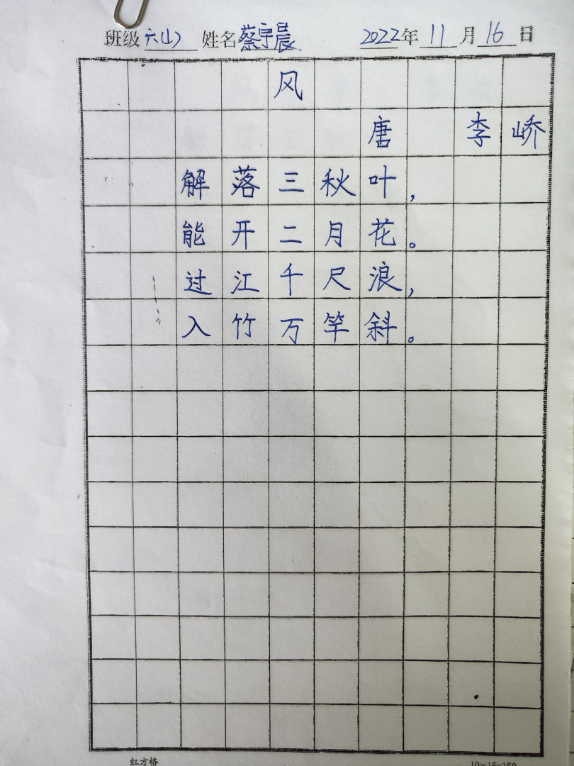 八卦洲中桥小学于2022年11月开展了“书经典诗文 品文化魅力”书写规范字活动,孩子通过一个月临摹字帖中的古诗文,促进学生文化修养、审美素质。现在对本次活动中表现优异的孩子进行表彰。
