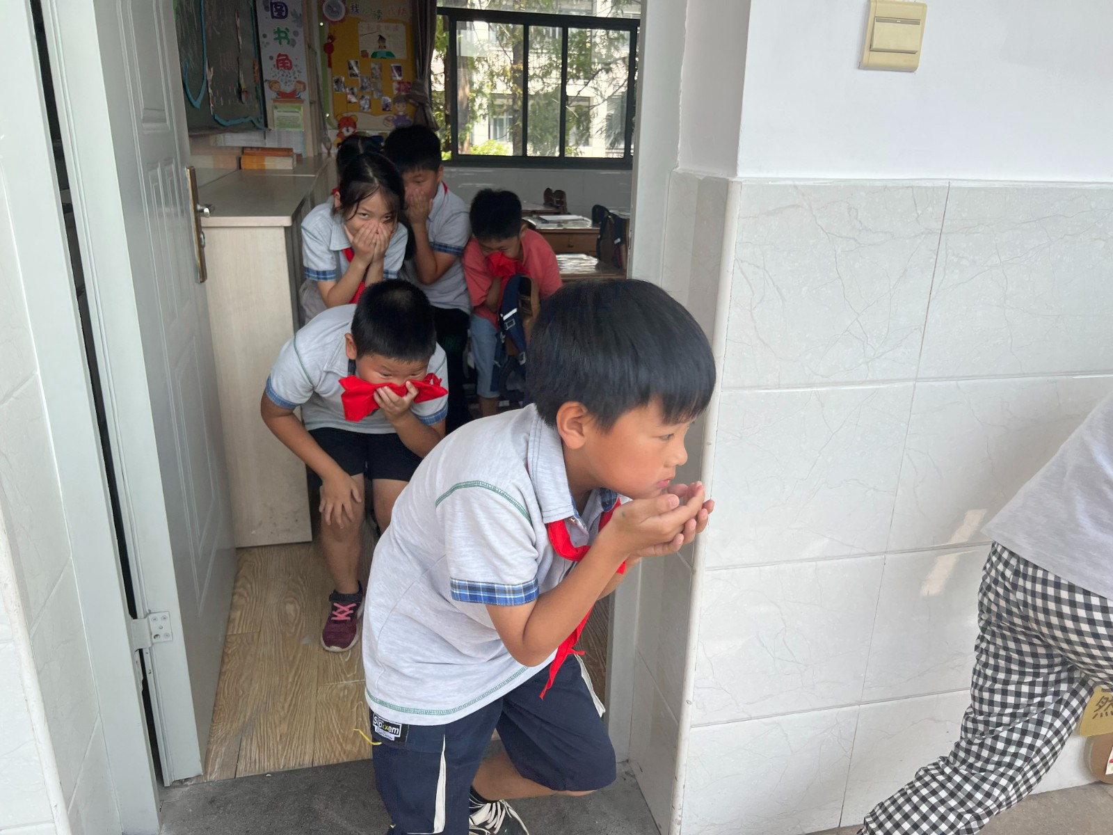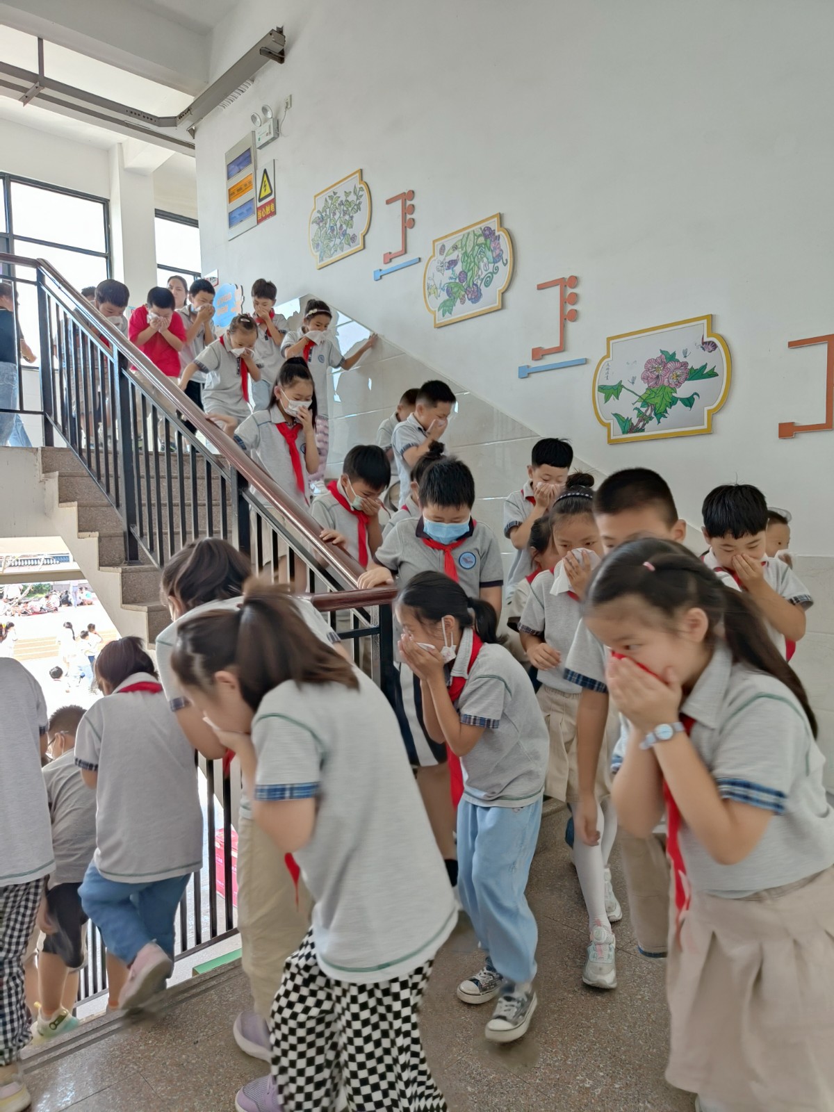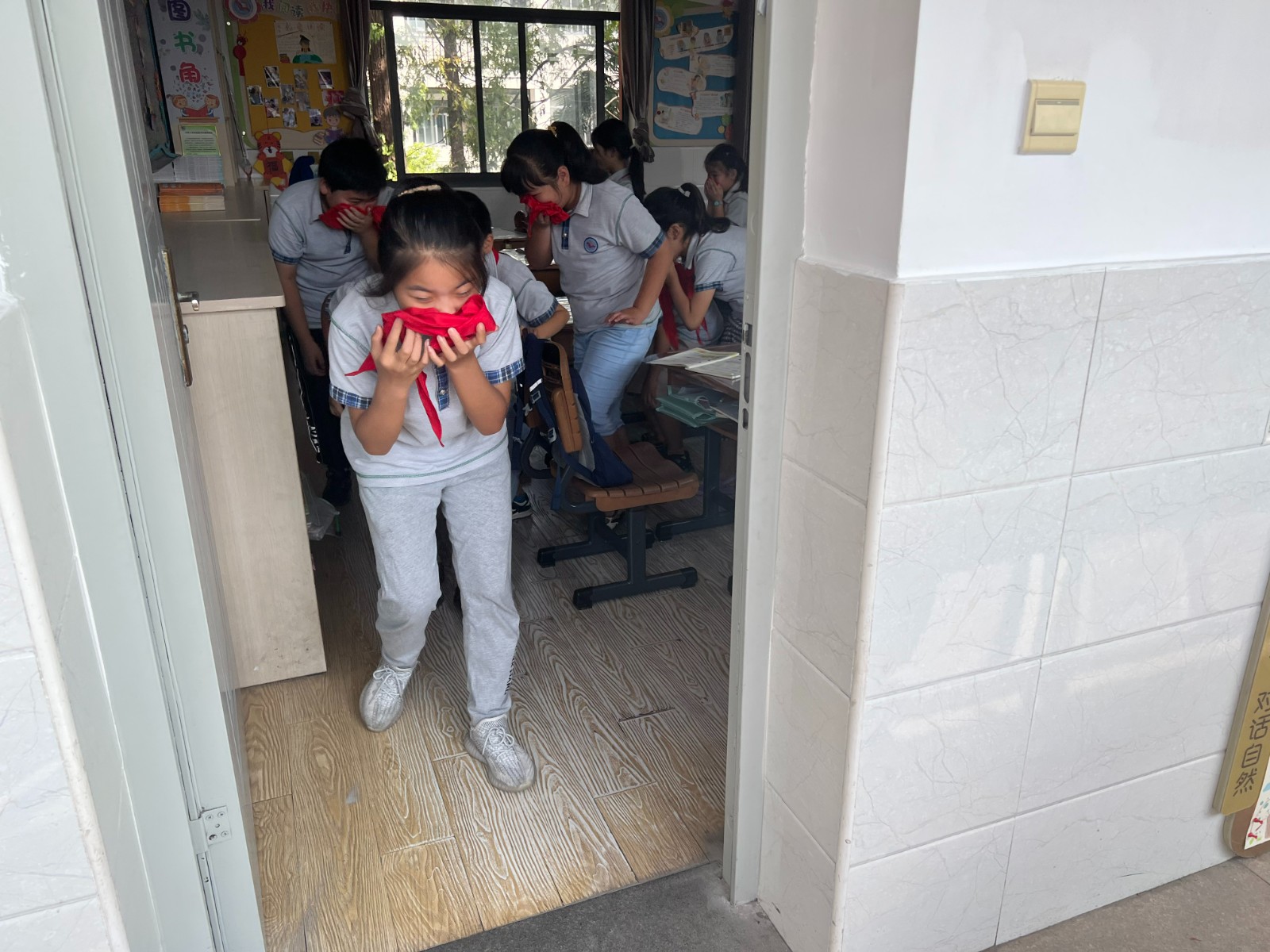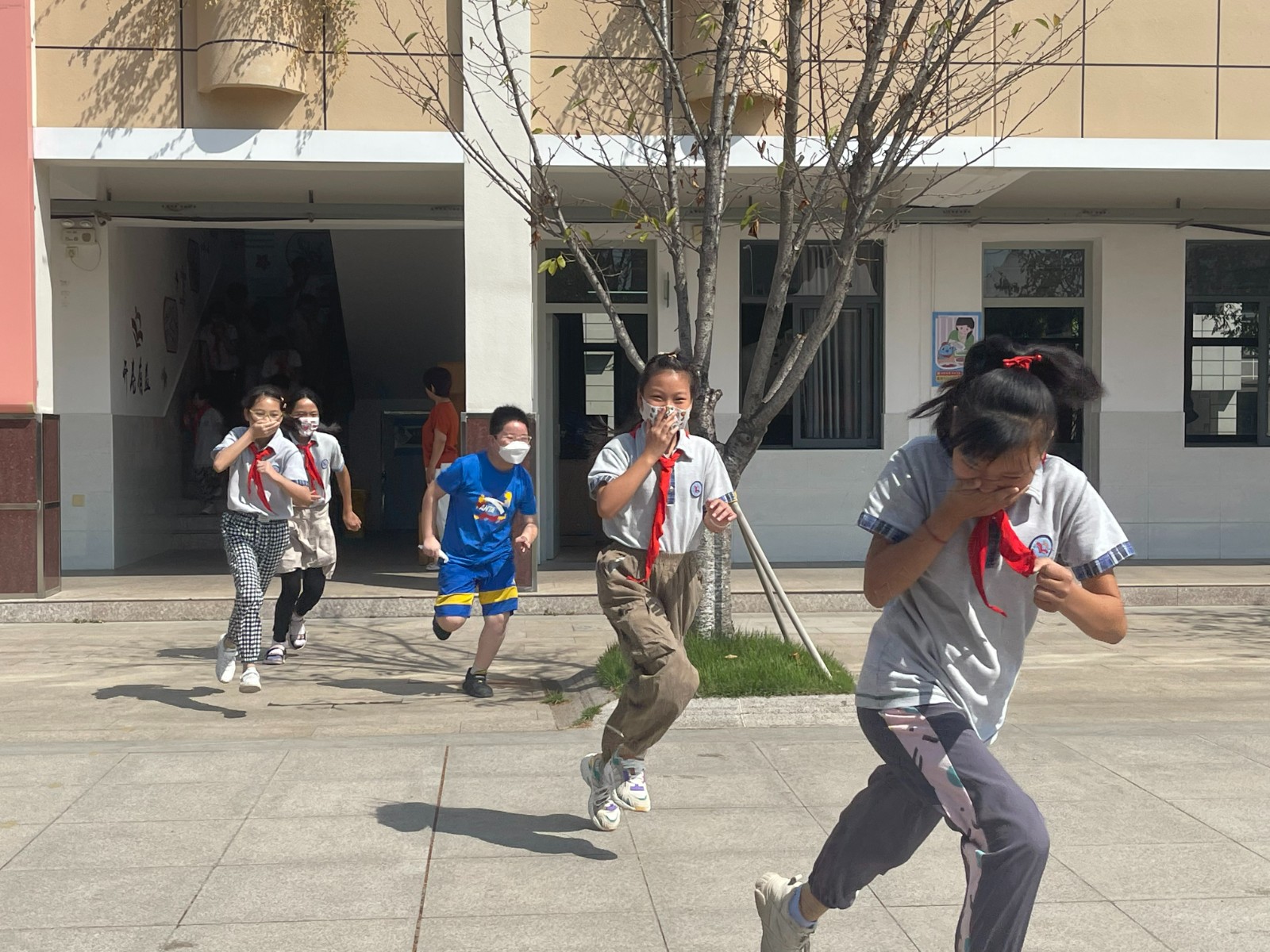 上午10点整,随着警报的响起,班主任老师迅速组织学生疏散逃生。各班按照指定路线,猫着腰,用手、袖口、湿巾等捂着嘴鼻迅速有序地进行紧急疏散。全体师生在第一时间撤离到校园的安全地带。