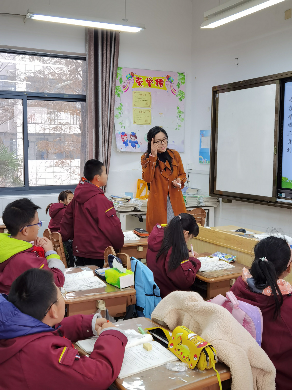 11月24日上午第一节课,吴相玉老师带来的是《金色的草地》第二课时的教学,课堂伊始,吴老师带领学生对本课的生字词进行了复习检查,夯实了学生学文的基础。接着学生在老师的引领下围绕着“草地发生了怎样的变化?”这一问题在文本中来回穿行,学生在老师的鼓励下由一开始的拘谨逐渐变得越来越主动。学生的思考、理解、表达越来越规范了,不少同学还兴致勃勃地参与比划手掌的活动环节,真正地理解了蒲公英变色的原理。可爱的草地、有趣的蒲公英带给文中小伙伴许多的快乐,吴老师一定也在学生们的成长中感受到了快乐!