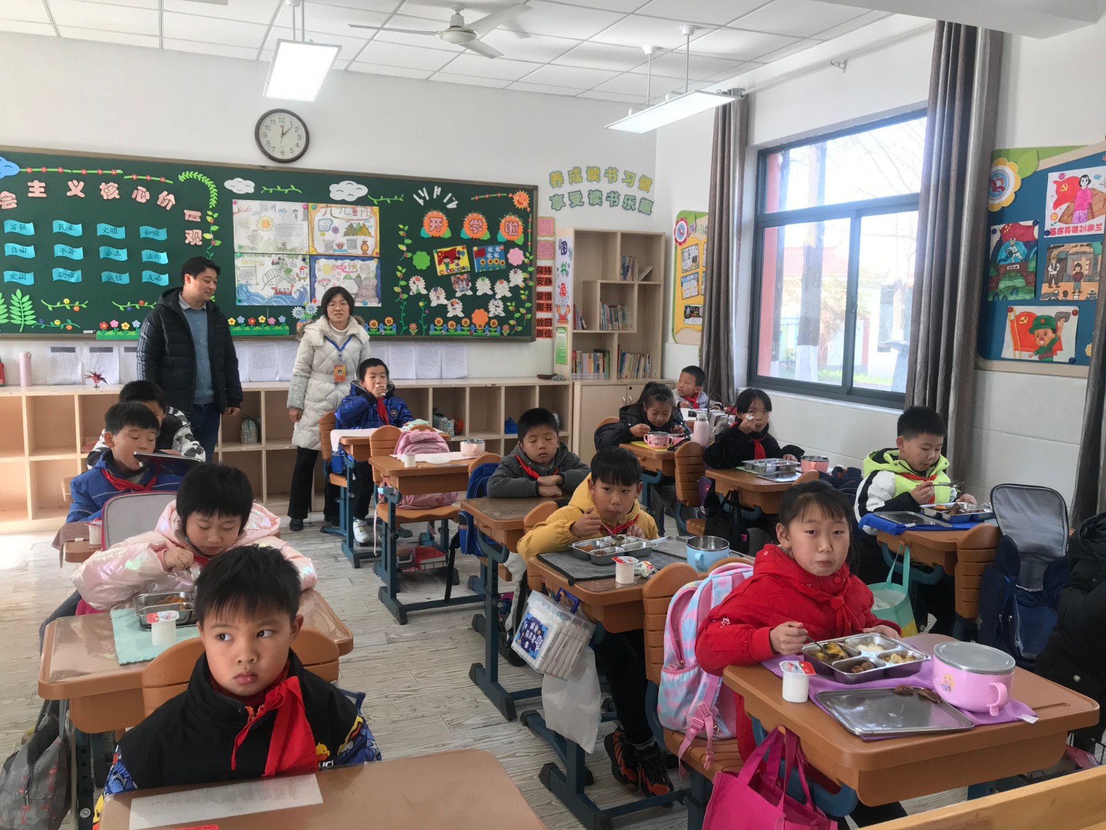 中午,郭督学和周校对每班午餐情况进行了检查,饭后郭督学认真查阅了师德师风建设台账资料。