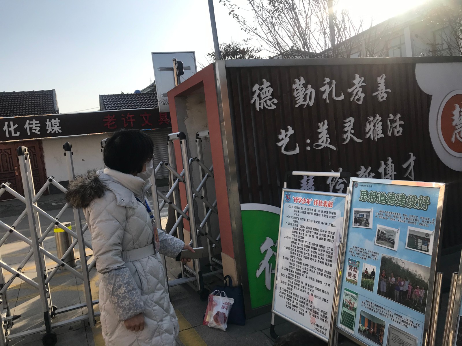 郭督学首先对校门卫室安全工作和安全记录情况进行了详细检查,并提醒保安人员继续加强疫情防控工作,不能松懈。随后巡视校园,认真观看校门口的展板和校园内“优秀教师和学生”橱窗,肯定学校师德建设工作做得扎实。