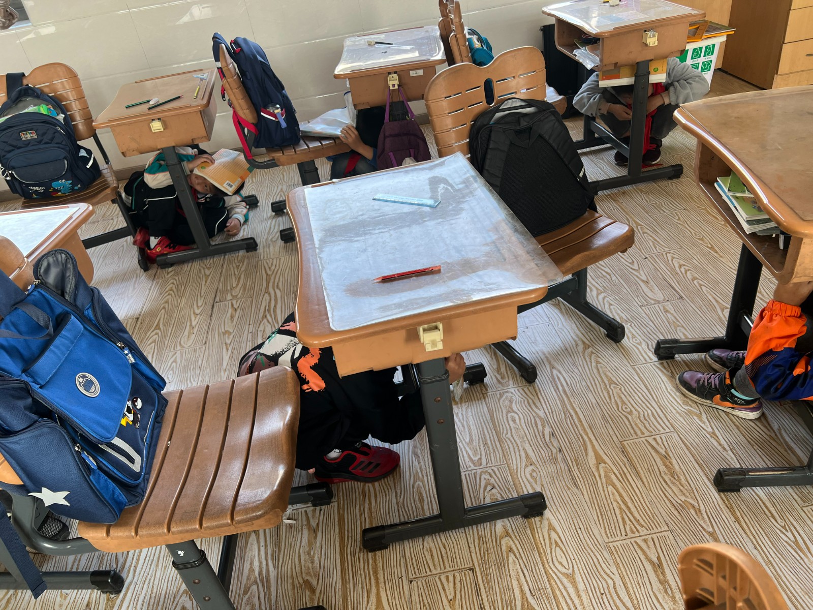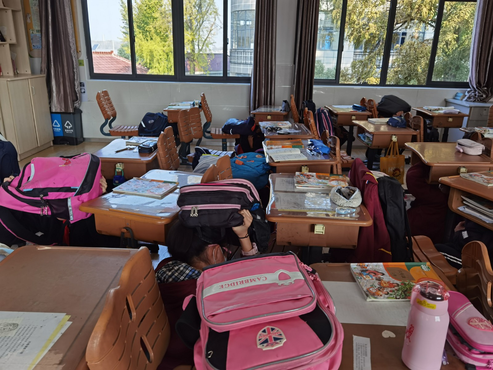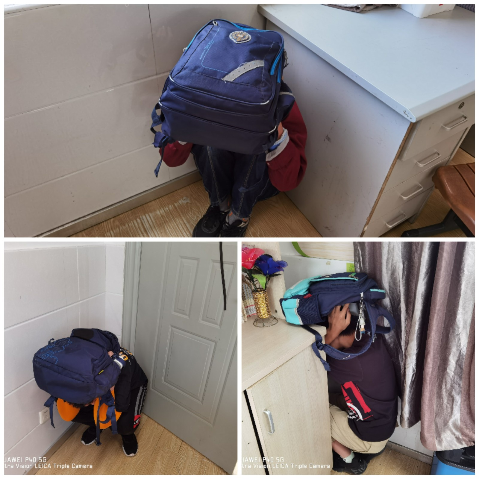 接到指令,总指挥李自勇副主任启动广播系统反复提醒师生,全体教师立即停止手头的工作,分头行动。班主任和本班任课教师立即关紧门窗并反锁,学生迅速躲藏到课桌底下。办公室其他教职工同样关紧门窗,严阵以待。